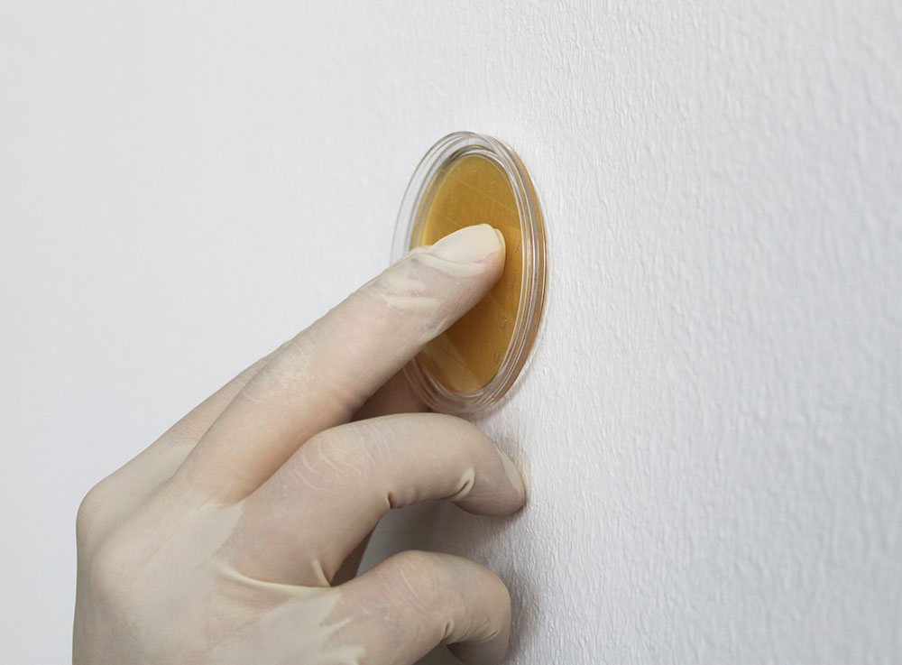Hier wird der Nährboden direkt auf die zu untersuchende Stelle gedrückt. So gelangen Schimmelpilzsporen direkt auf den Nährboden, so dass eine mögliche Belastung klar zuzuordnen ist.